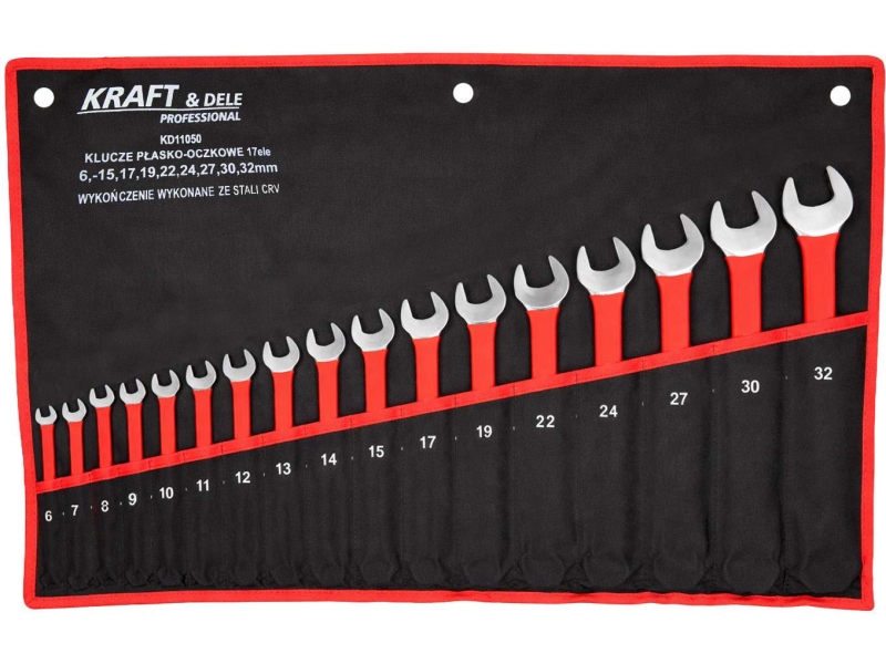 KLUCZE PŁASKO-OCZKOWE CRV17 el.6-15, 17, 19, 22, 24, 27, 30, 32mm Kraft&Dele KD11050