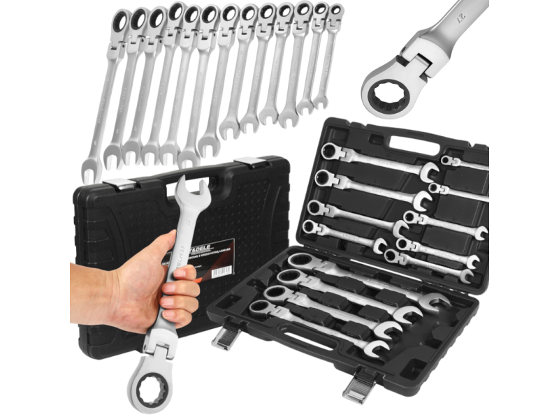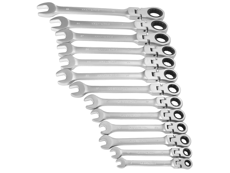 KLUCZE PŁASKO OCZKOWE Z GRZECHOTKĄ ŁAMANE 8-32MM 13 EL Kraft&Dele KD11305
