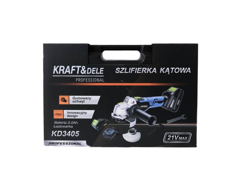 Szlifierka kątowa akumulatorowa - zestaw walizka 21V - 125mm - 2x3000mAh + ładowarka Kraft&Dele KD3405