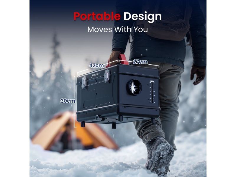 Входящий в комплект адаптер переменного/постоянного тока позволяет питать обогреватель от стандартных бытовых розеток или источников питания автофургона. Наслаждайтесь гибкостью установки и надежной работой от сети 12 В где угодно — дома, в дороге или вдали от электросети.