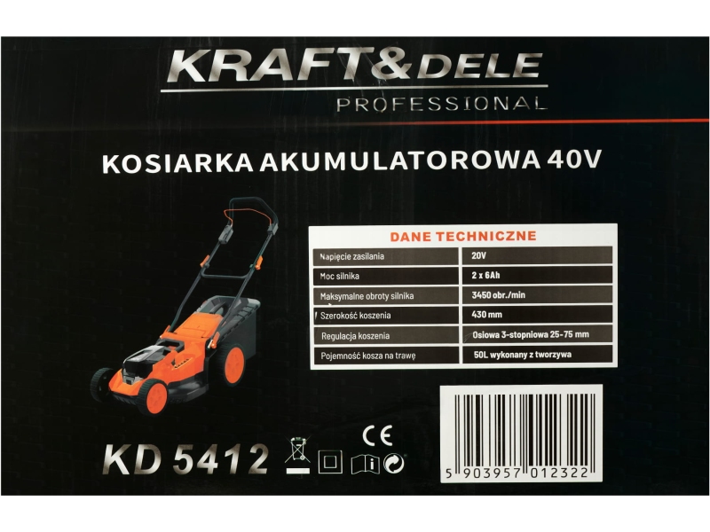 KOSIARKA AKUMULATOROWA40V 2 x 6Ah 430mm Kraft&Dele KD5412