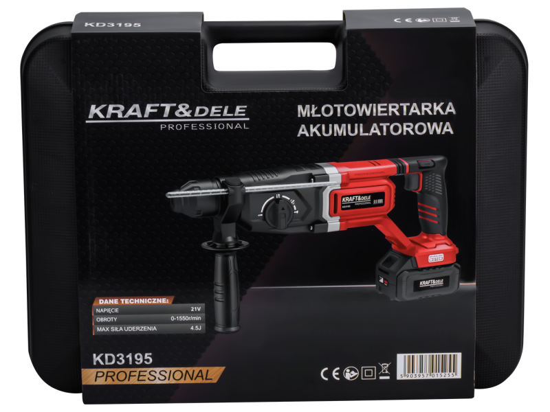 Młot udarowy akumulatorowy 21V4,5J BEZSZCZOTKOWY 2 X 4Ah Kraft&Dele KD3195
