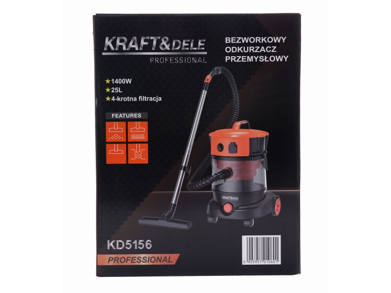 ODKURZACZ PRZEMYSŁOWY BEZWORKOWY CYKLONOWY SUCHO-MOKRO 1400W 25L Kraft&Dele KD5156