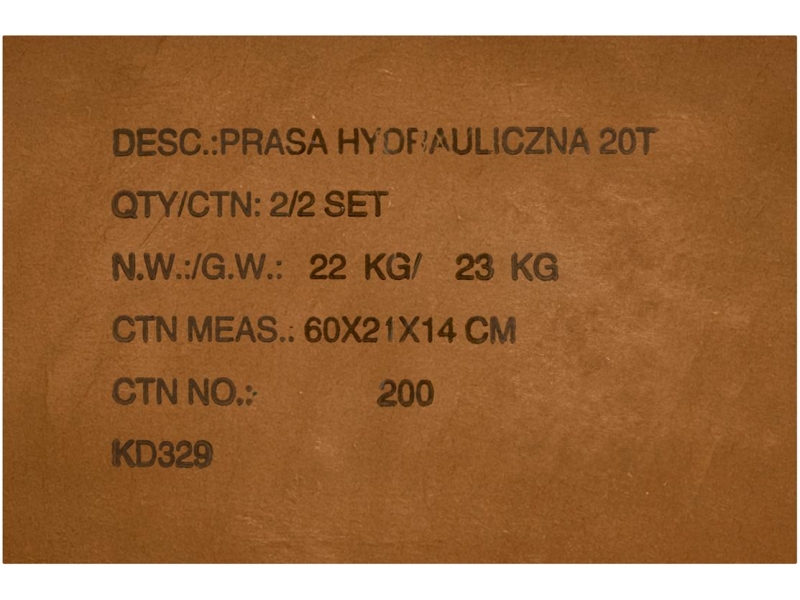 PRASA HYDRAULICZNA 20T KD329