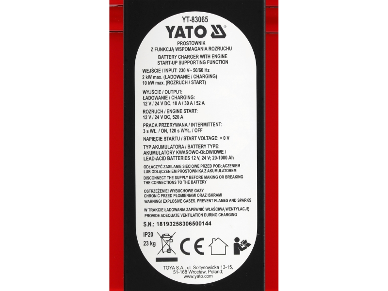 Пуско-зарядное устройство 20-1000Ач YATO YT-83065