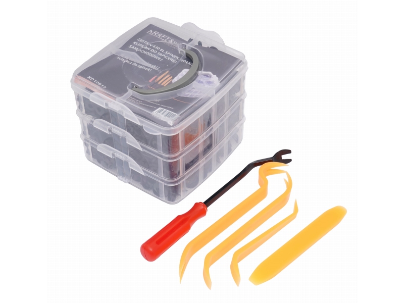 ZESTAW 630 SZT KOŁKÓW, SPINE DO TAPICERKI SAMOCHODOWEJ+ WYJAMK I ŚCIĄGACZE Kraft&Dele KD10612