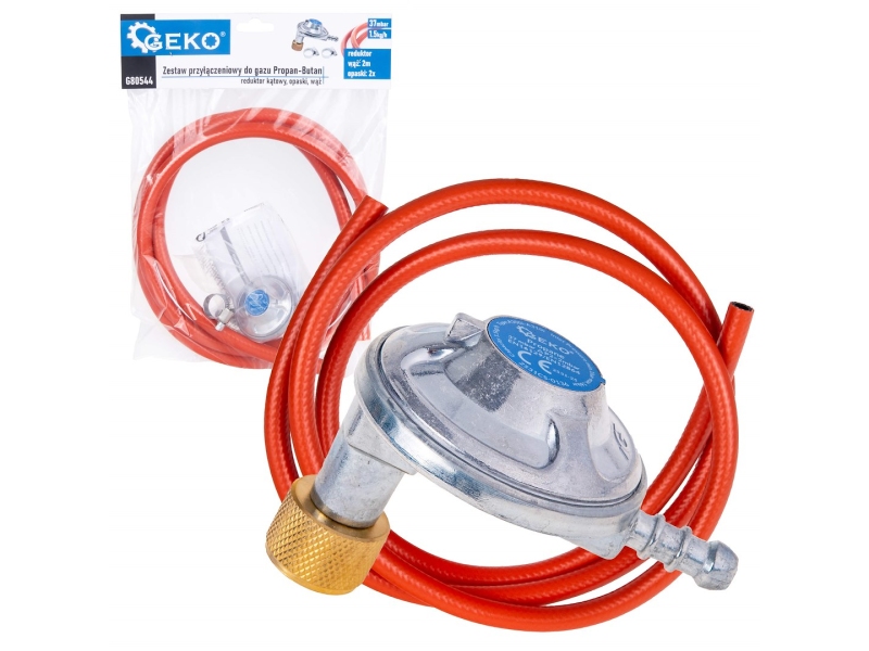 Zestaw przyłączeniowy do gazu Propan-Butan – reduktor kątowy, opaski i wąż 2m